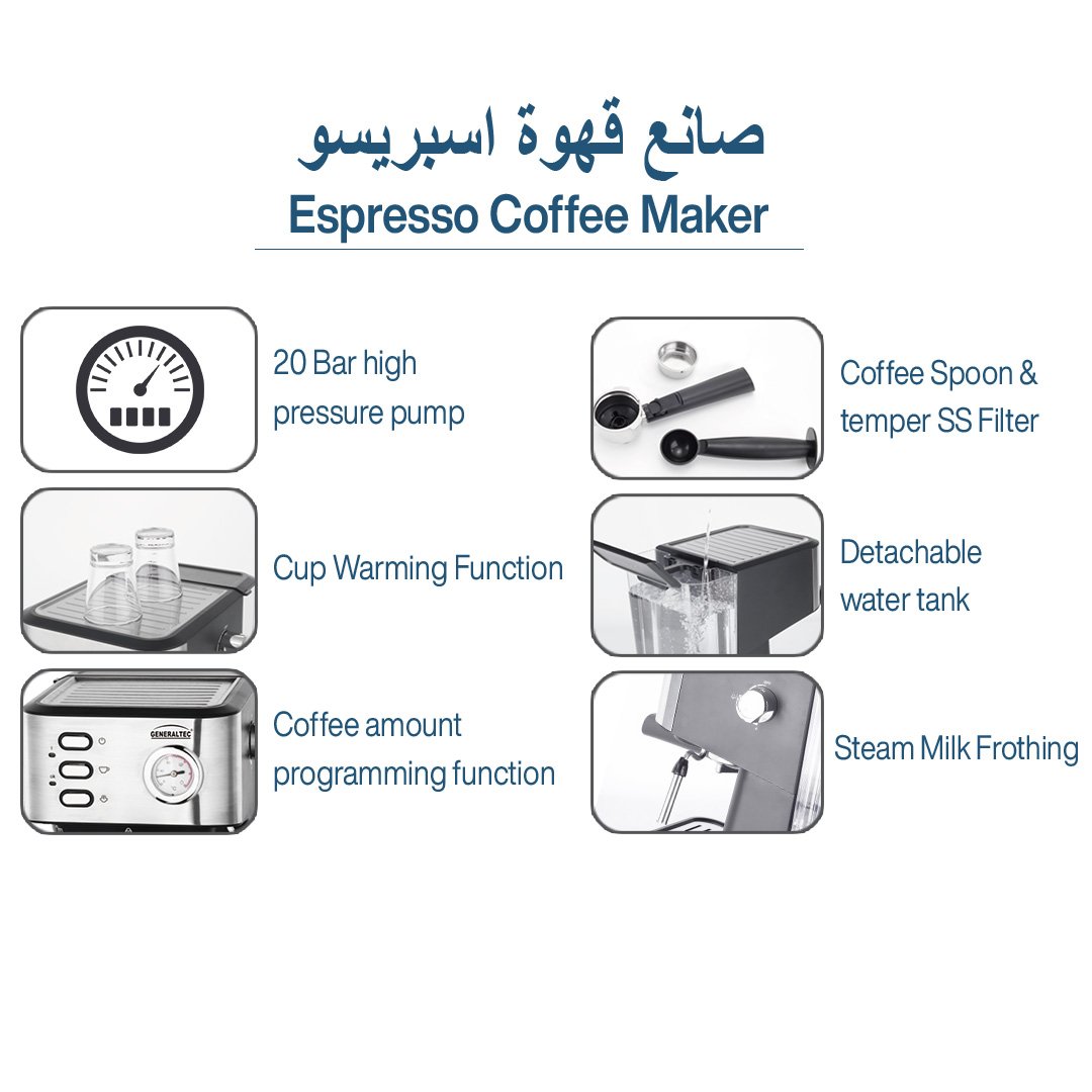 مميزات ماكينة صنع قهوة الإسبريسو GCM2000EX من جنرالتيك: