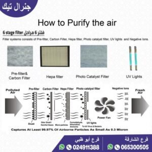 - فلتر الكربون المنشط: يمتص الروائح والغازات الضارة.