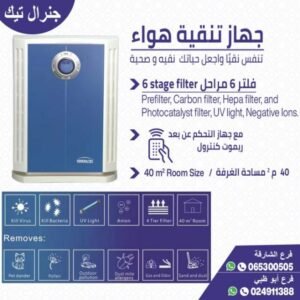 مميزات منقي الهواء جينيرالتيك رقم الموديل GAP200RU مع فلتر 6 مراحل، مساحة الغرفة 40 م2