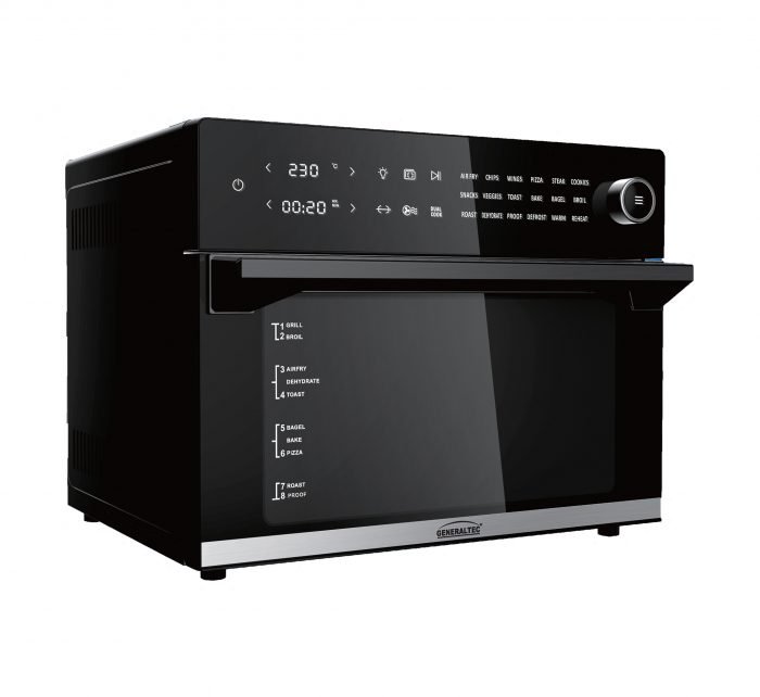 يبدو أن المقلاة الهوائية GKA40AF من جينيرالتك GKA40AF ذات سعة 30 لترًا ونافذة مرئية ووظيفة الطهي المزدوج الخاصة تبدو وكأنها جهاز مطبخ متعدد الاستخدامات للغاية. يبدو أنه مصمم للأشخاص الذين يحتاجون إلى سعة طهي أكبر إلى جانب المرونة في الجمع بين تقنيات الطهي المختلفة للحصول على أفضل النتائج. إليك تفاصيل ما يمكنك توقعه من هذا الطراز: